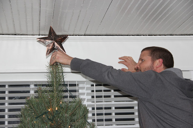 We had egg nog tonight, listened to Christmas music and decorated the tree. Jackson put the star on top (Michael adjusted it a little bit) and Jackson put about two ornaments and Addie handed a lot of them to Michael. All in all it was an experience! Fun tradition. Jackson is really enjoying opening his daily present/book about Jesus and The First Christmas. It's been fun to have something like that to look forward to each night.
